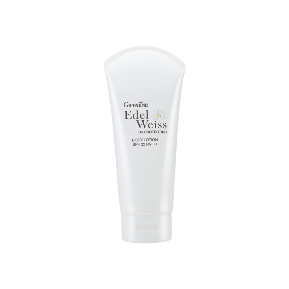 โลชั่นกันแดดสำหรับผิวกาย ให้ผิวเป็นประกาย ไม่เหนียวเหนอะหนะซึมซาบเร็ว ช่วยปกป้องผิวจากรังสียูวีในแสงแดดได้ทั้ง UVAและ UVB พร้อมประสานการทำงานของ Edelweiss Flower Extract ซึ่งถูกปลูกแบบ organic ที่บริเวณเทือกเขาแอลป์ ประเทศสวิตเซอร์แลนด์ และ Natural-White Act ช่วยเพิ่มความชุ่มชื้นและให้ผิวขาวกระจ่างใสเป็นธรรมชาติ