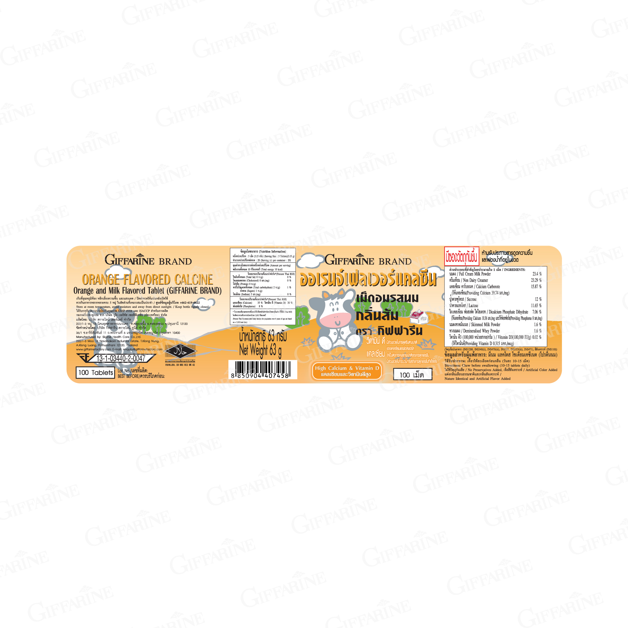 กิฟฟารีน แคลซีน ผลิตภัณฑ์เม็ดเคี้ยว(ผลิตภัณฑ์เด็ก) กลิ่นส้ม