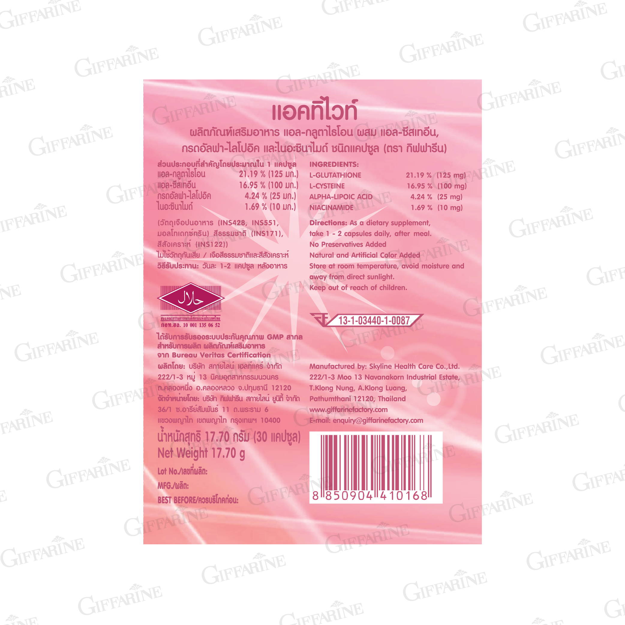 ผลิตภัณฑ์เสริมอาหาร แอล-กลูตาไธโอน ผสม แอล-ซิสเทอีน กรดอัลฟา-ไลโปอิค และไนอะซินาไมด์ชนิดแคปซูล ตรา กิฟฟารีน