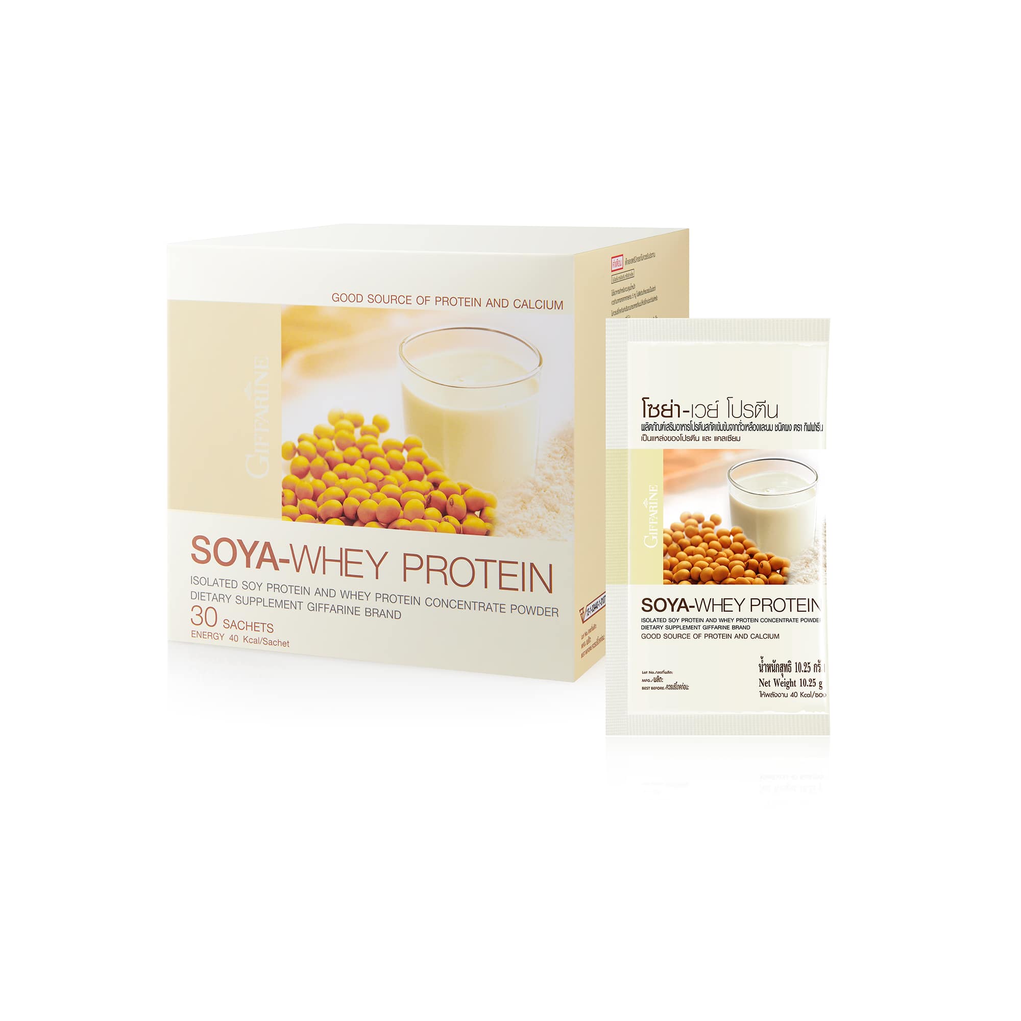 ผลิตภัณฑ์เสริมอาหาร โปรตีนสกัดเข้มข้น จากถั่วเหลืองและนม ชนิดผง ตรา กิฟฟารีน ส่วนประกอบที่สำคัญโดยประมาณใน 1 ซอง :โปรตีนสกัดจากถั่วเหลือง 72.91 % (7.47 ก.) โปรตีนสกัดเข้มข้นจากนม 23.64 % (2.42 ก.)แคลเซียมคาร์บอเนต 1.97 % (0.20 ก.)แอล-เมไธโอนีน 0.59 % (60.6 มก.)